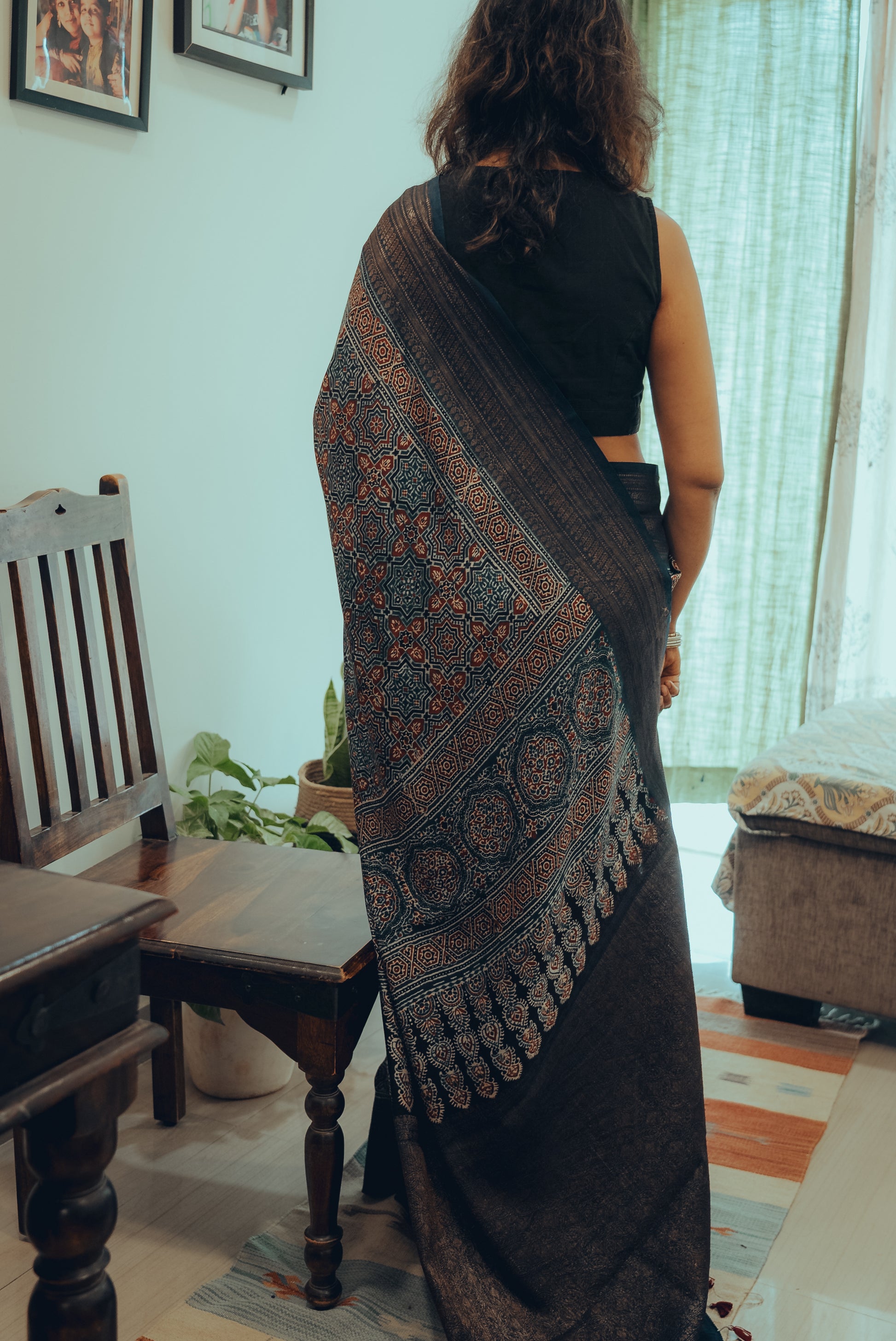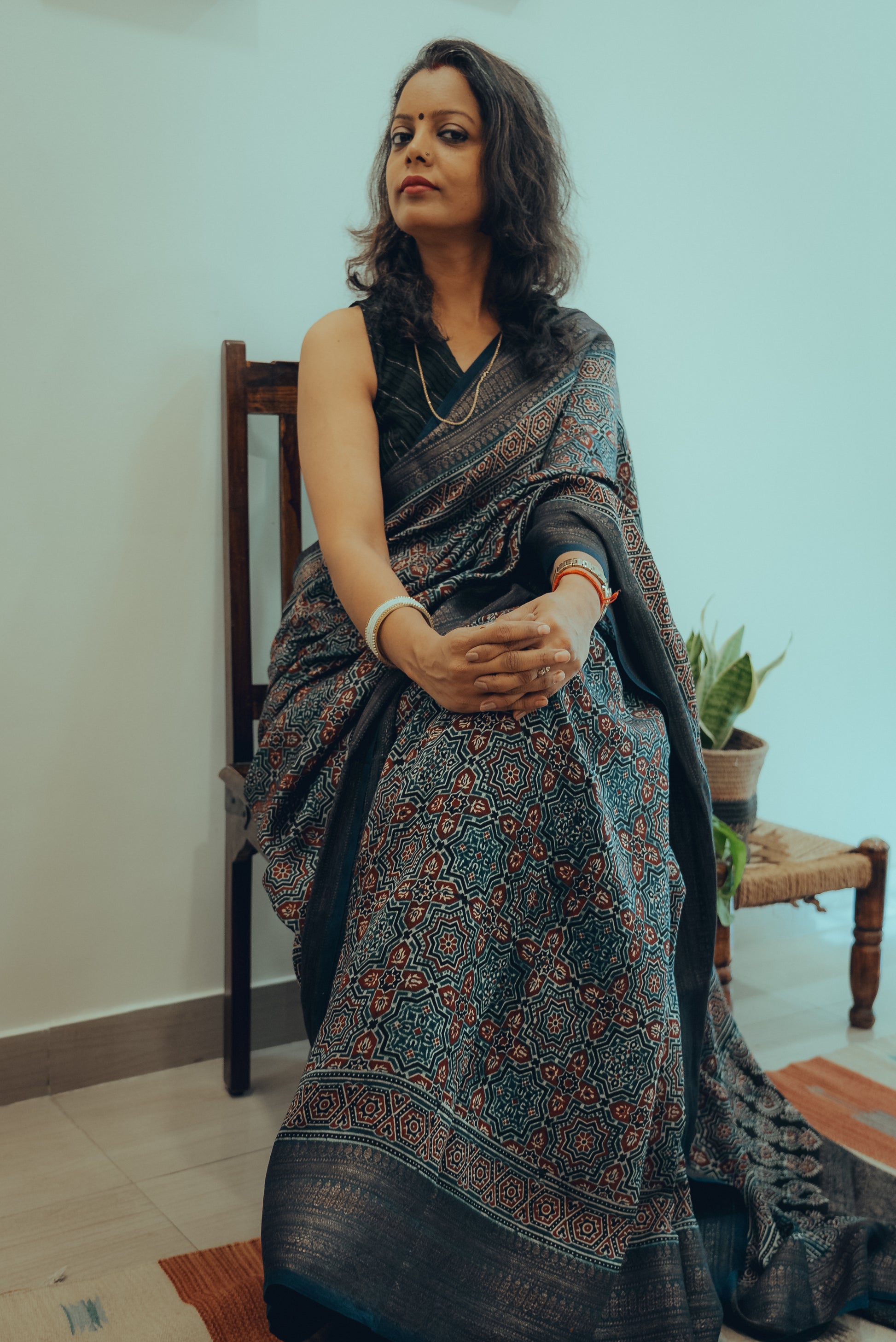 - A new range of Ajrakh chanderi Sarees with jacquard zari pallu.