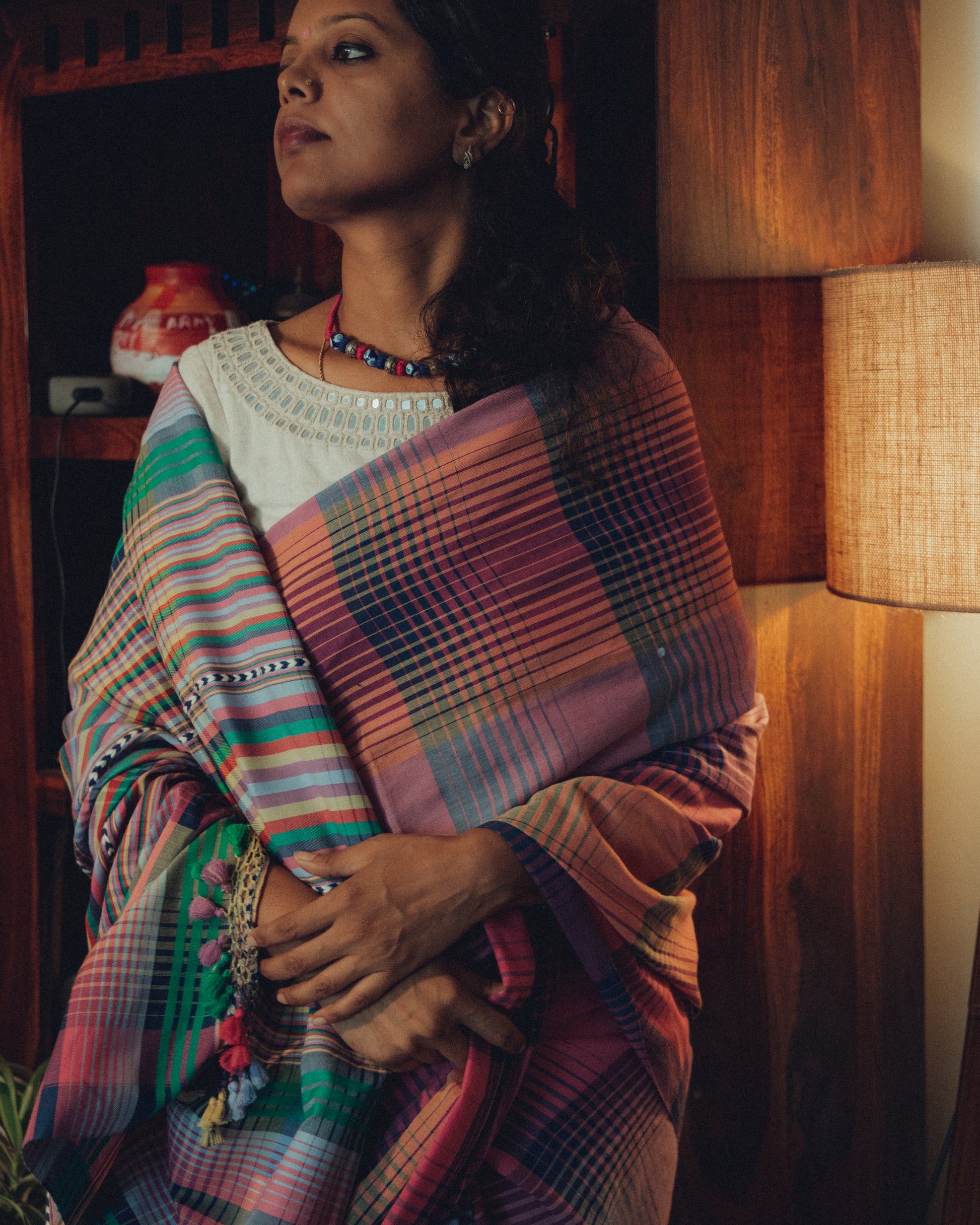 - Indulge in the goodness of handloom, painstakingly handwoven with great care and love in the most natural forms of cotton called soft Cotton with the signature weaves of the Bhuj weaving community.