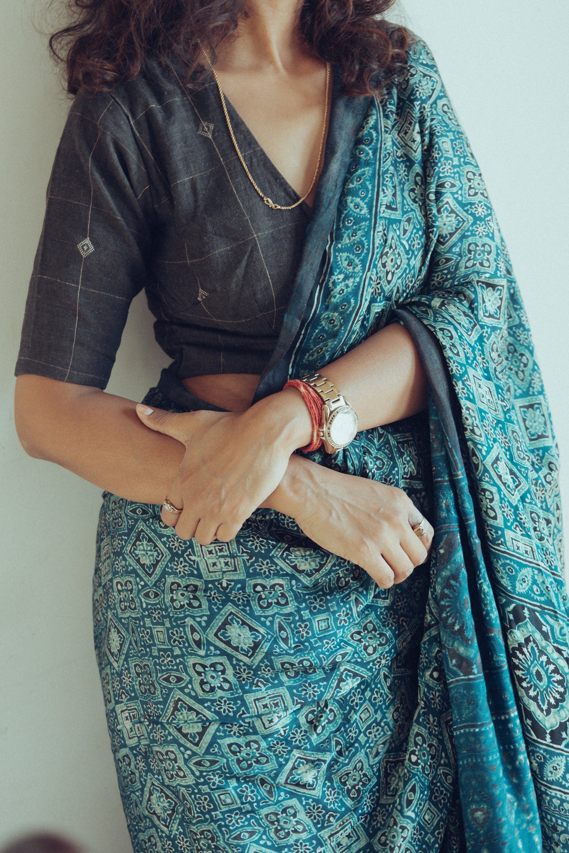 It's a non padded blouse in Organic Kala cotton with Extra weft .