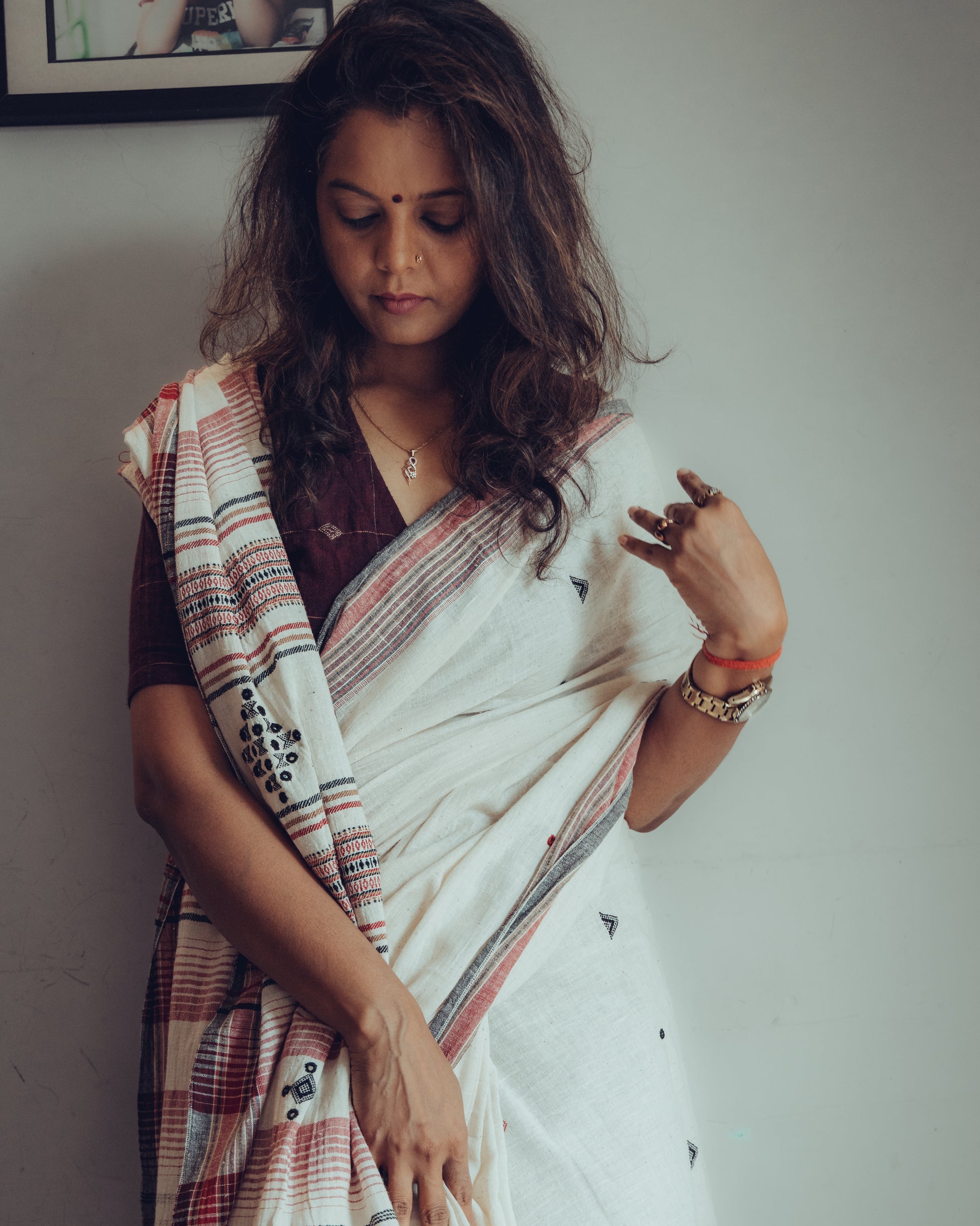 BHUJODI ORGANIC COTTON SAREE (MIRROR WORK)