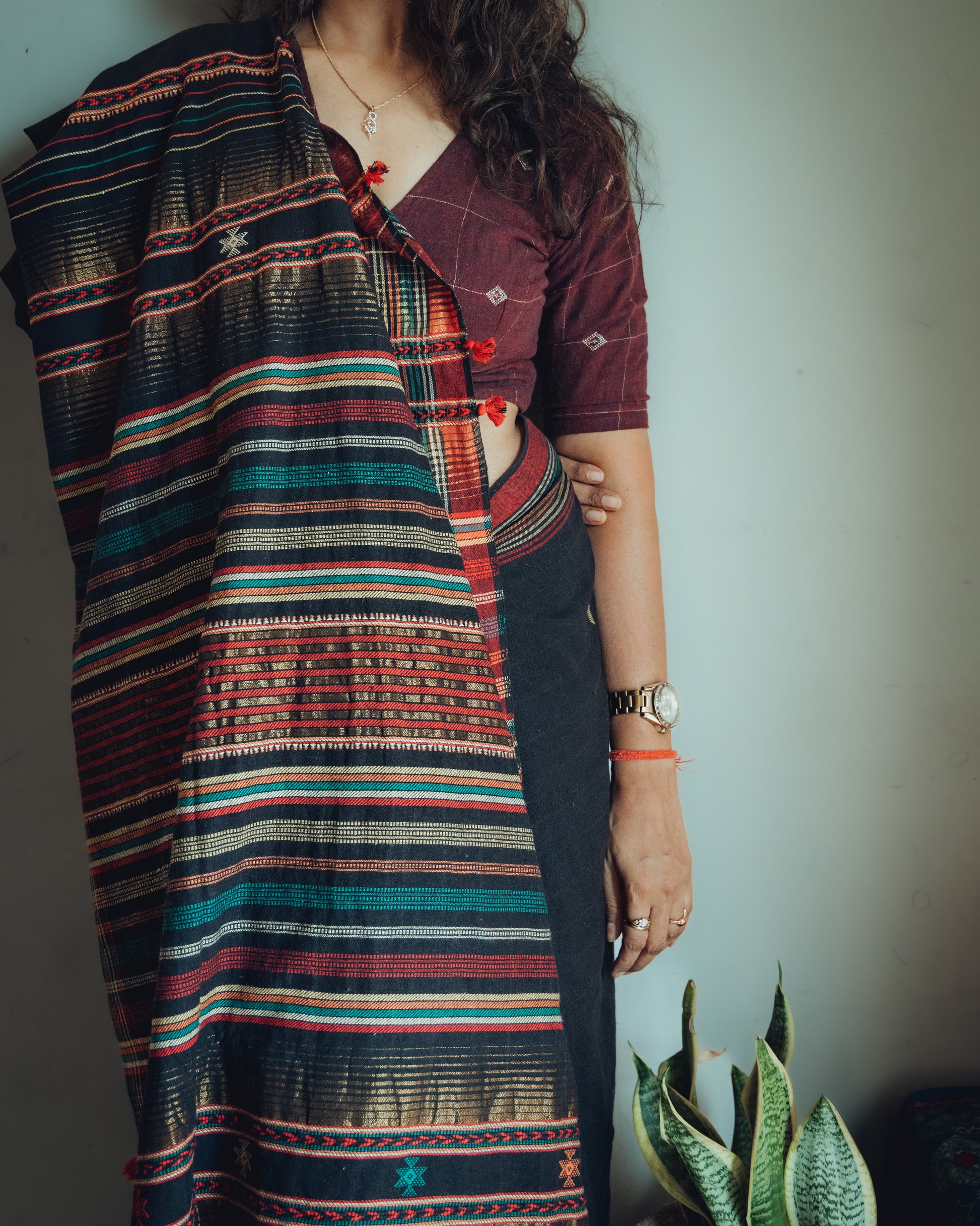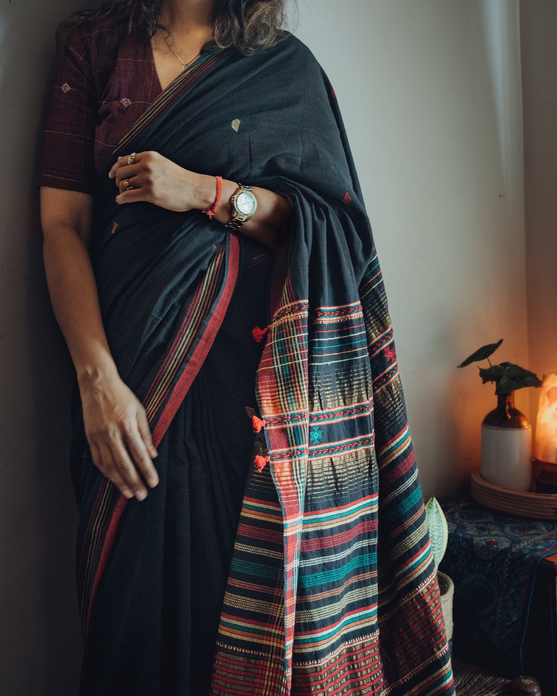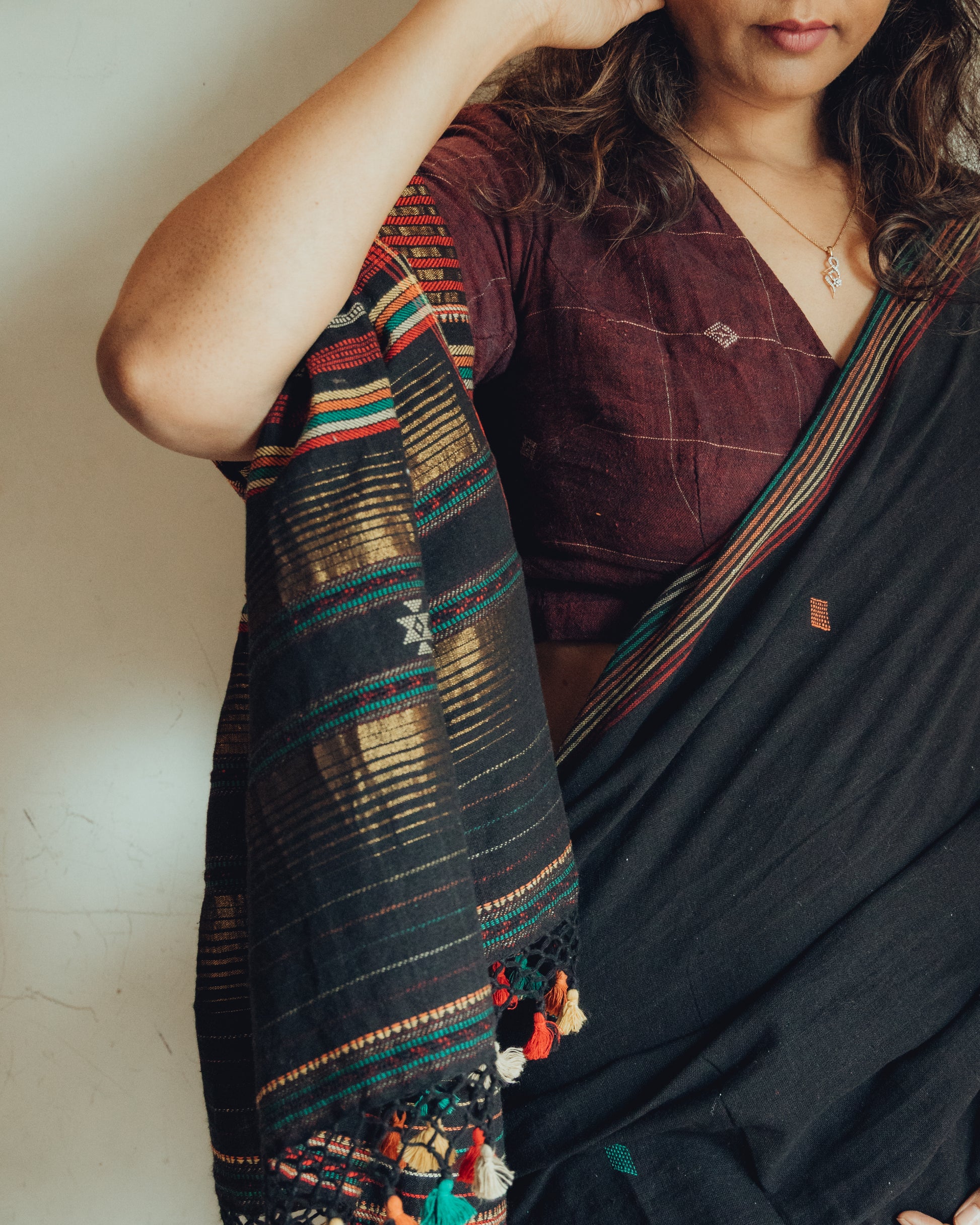 - Indulge in the goodness of handloom, painstakingly handwoven with great care and love in the most natural forms of organic cotton called Kala Cotton with the signature weaves of the Bhuj weaving community.