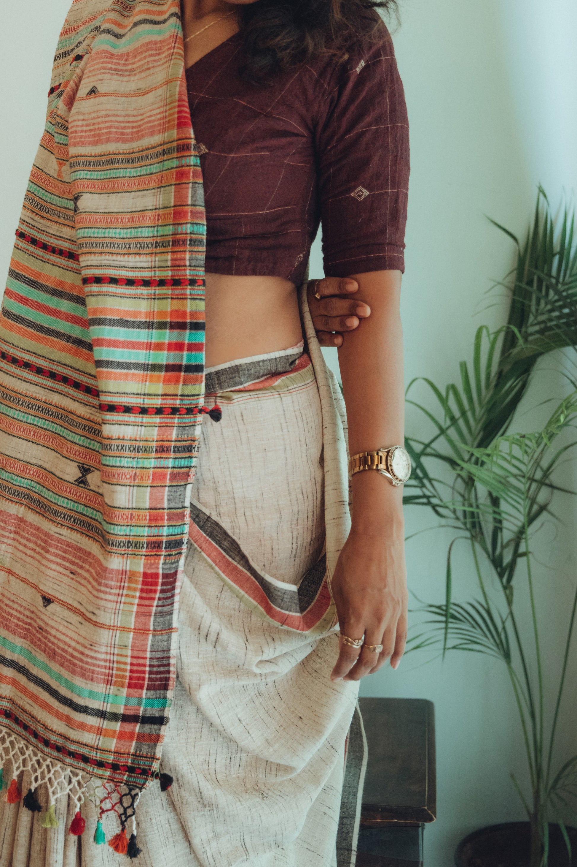 - Indulge in the goodness of handloom, painstakingly handwoven with great care and love in the most natural forms of Tussar Silk with the signature weaves of the Bhuj weaving community.