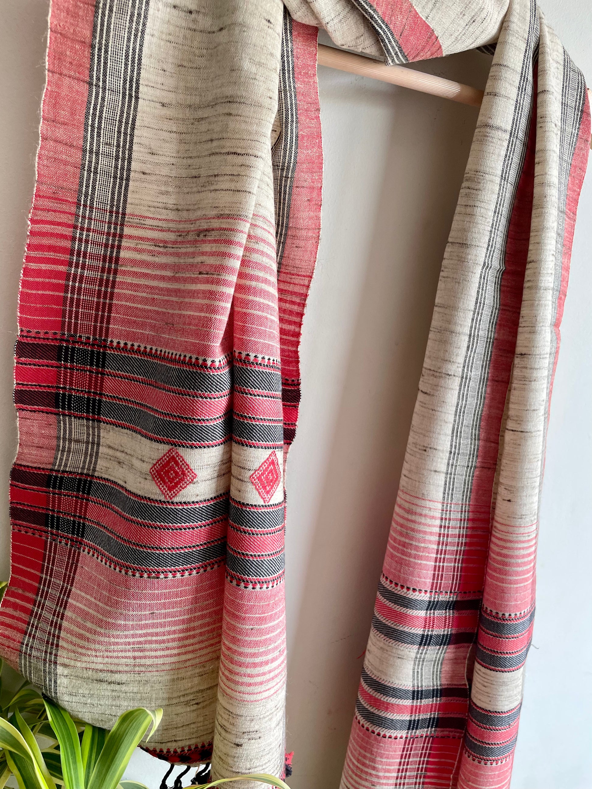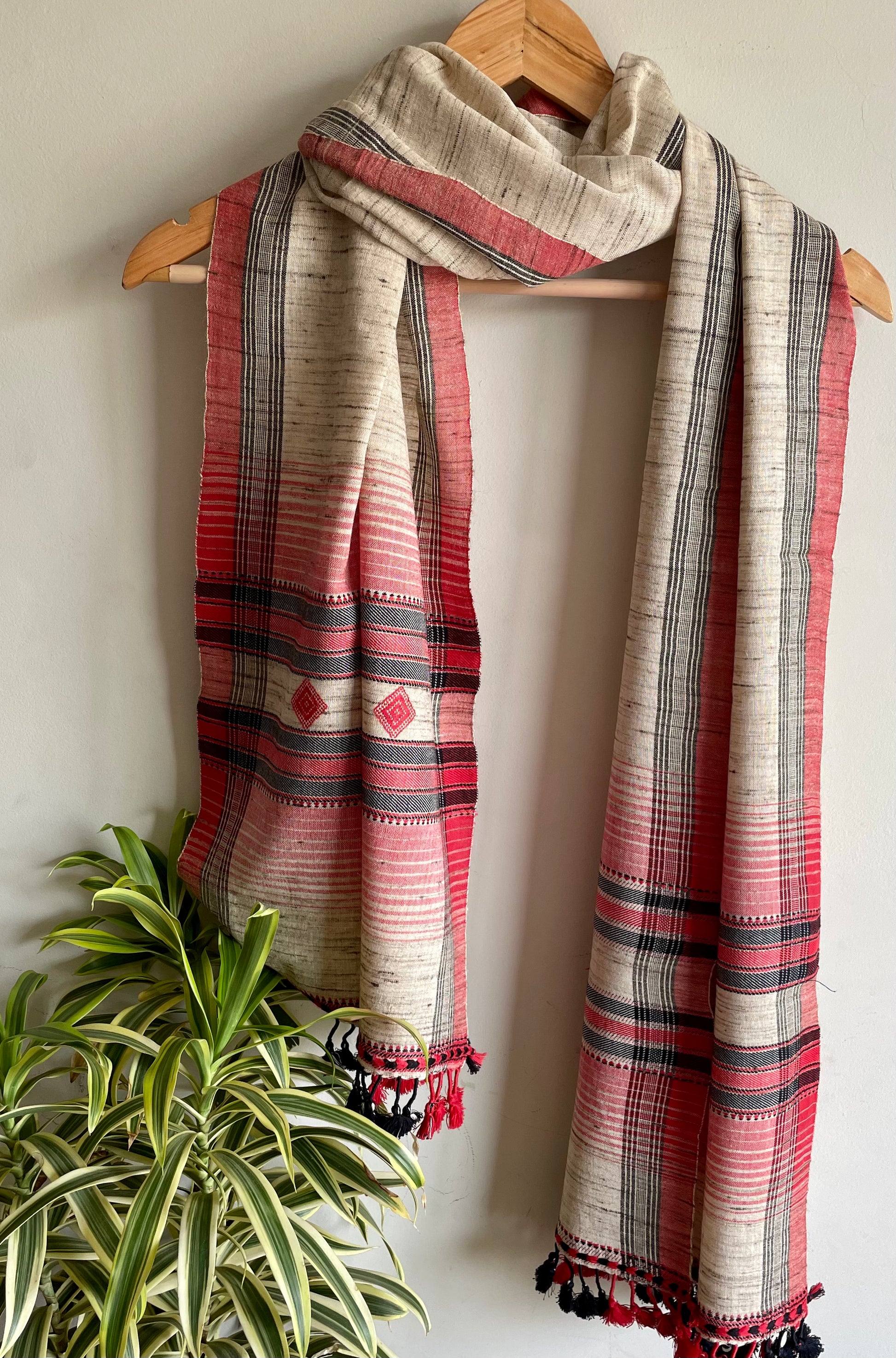 This Signature Bhujodi Stole, made with a combination of Tussar and Merino Wool. This stole is made with natural dyes by master Bhujodi Weaver Vankar Shamji Vishram Valji made. Wrap yourself with such valuable piece of Kutchi heritage.