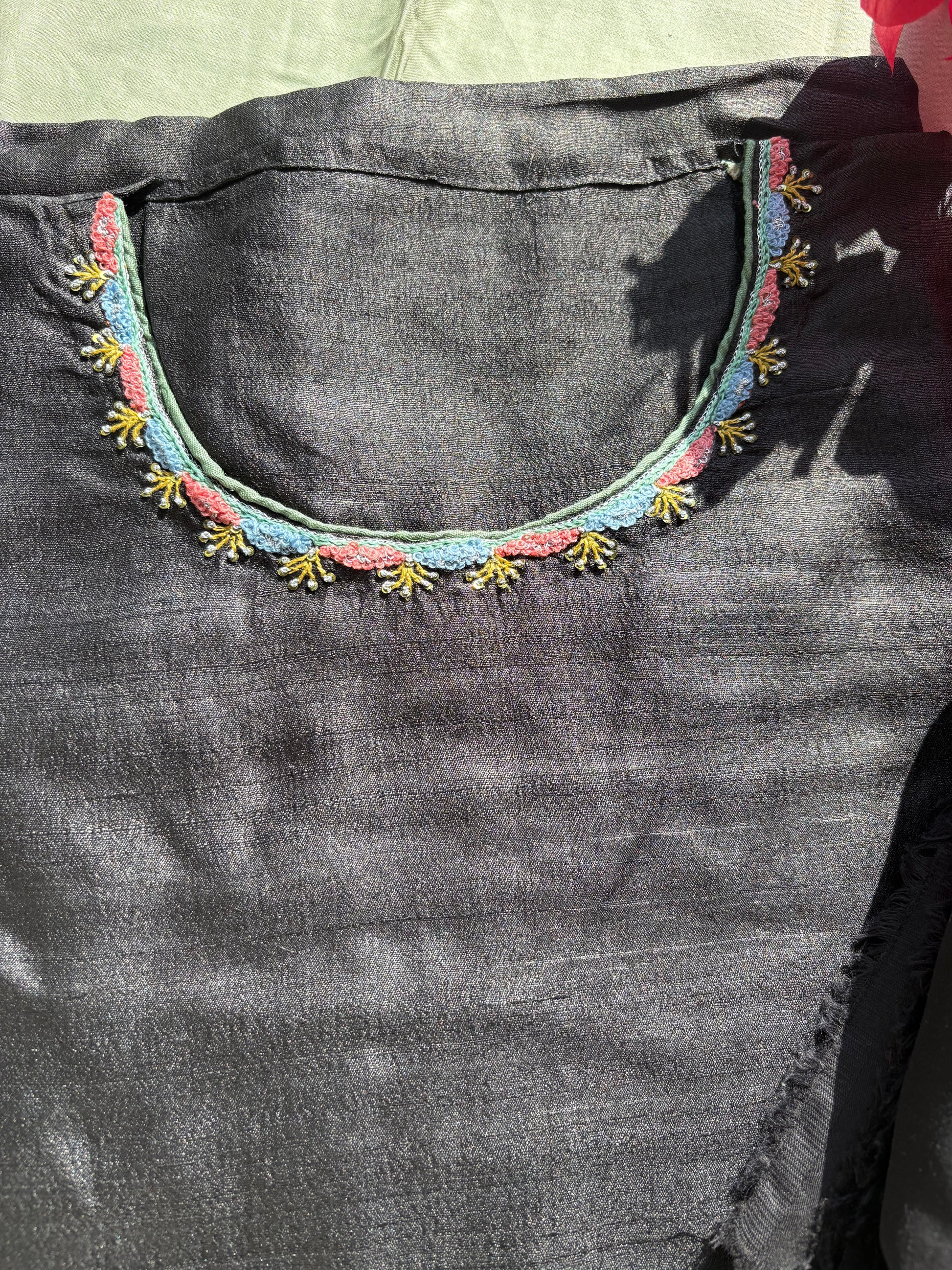 Kurta:- Hand-embroidered Tussar Silk, Semi Stiched Kurta.