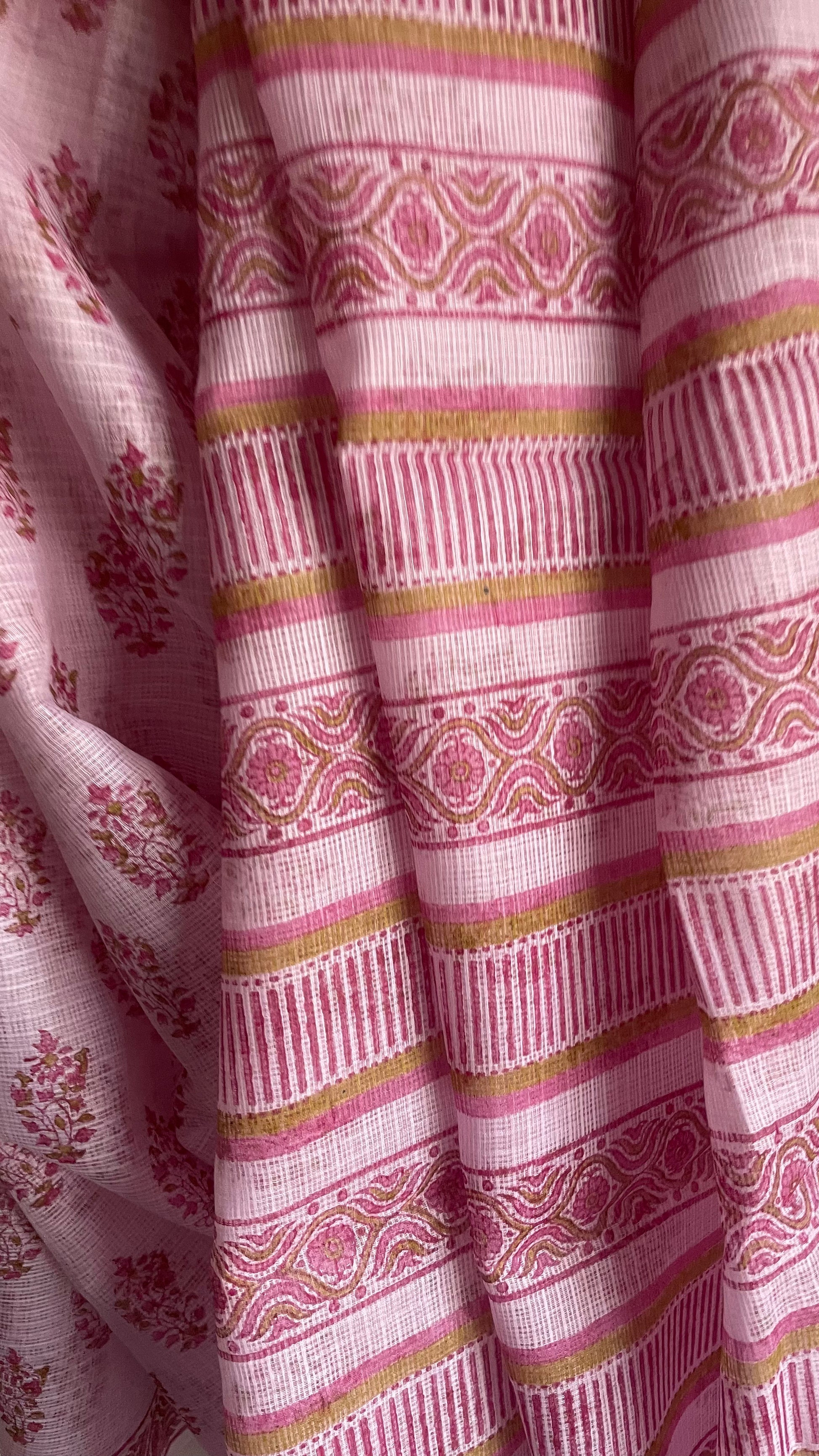 Product Details: Floral Hand block printed handloom Kota Doria cotton saree