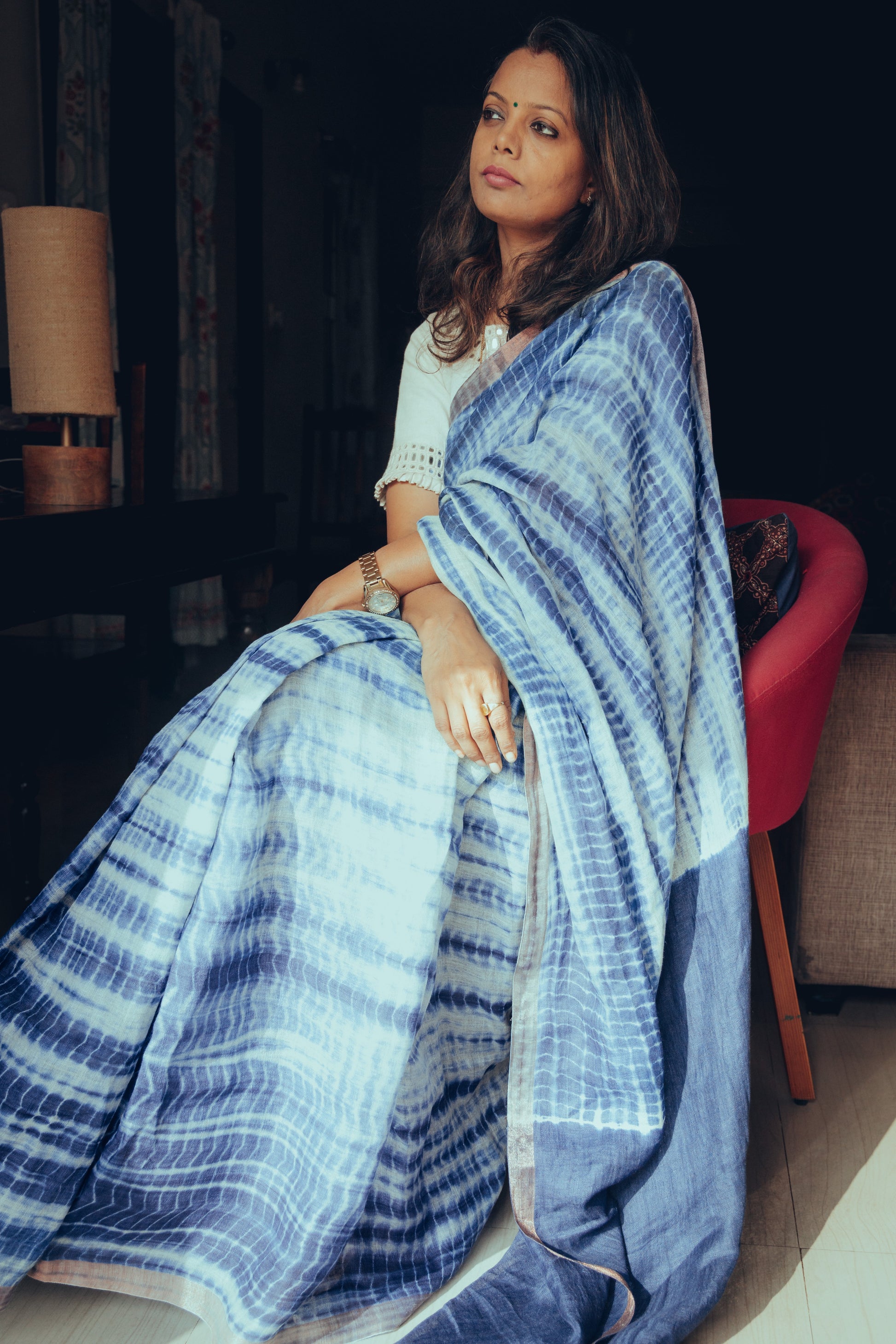 Exclusive Syutikargha Linen Saree Tie-Dye Shibori