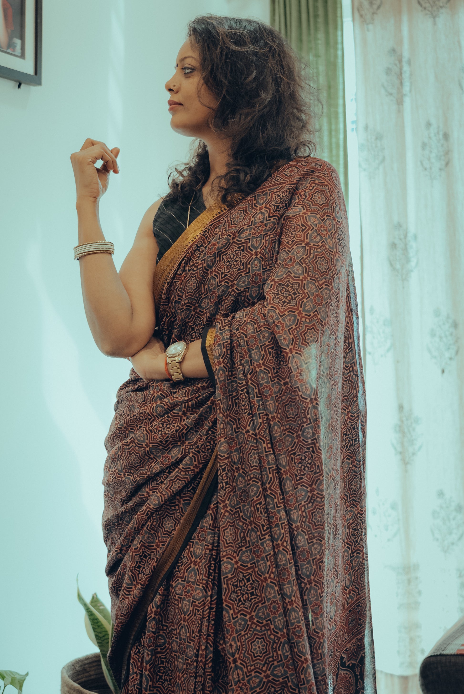 MADURAI COTTON AJRAKH (Zari Border & Pallu)