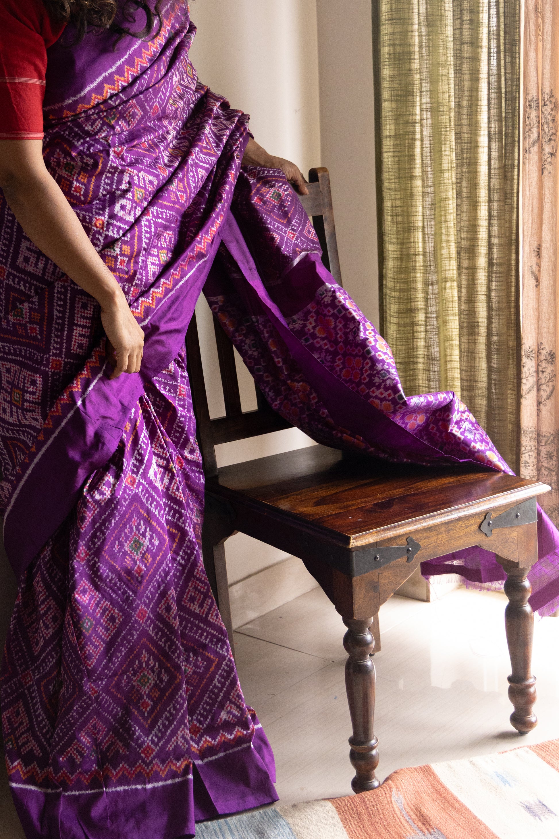 Product Description: This Pochampally Silk Ikkat Saree has a unique pattern. The elegant weave comes with Gold Zari border. The strikingly pretty pallu lends a gorgeous complement. The iikat blouse adds oodles of panache!