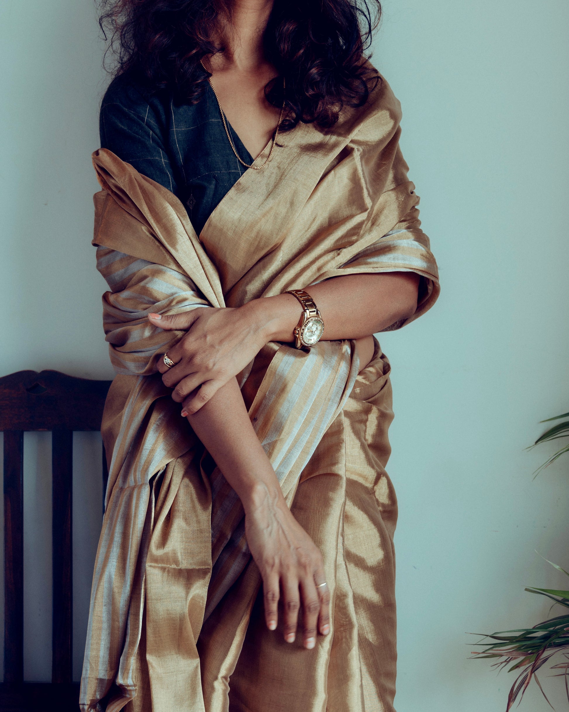 - Handloom Gold tissue Chanderi is a labor of love from our Weaver in Madhya Pradesh